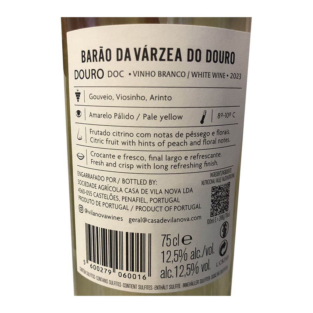 Diese 750ml Flasche Barão da Várzea do Douro Reserve - Weißwein, ist ein Weißwein aus Porto e Douro in Portugal von Barão da Várzea do Douro.