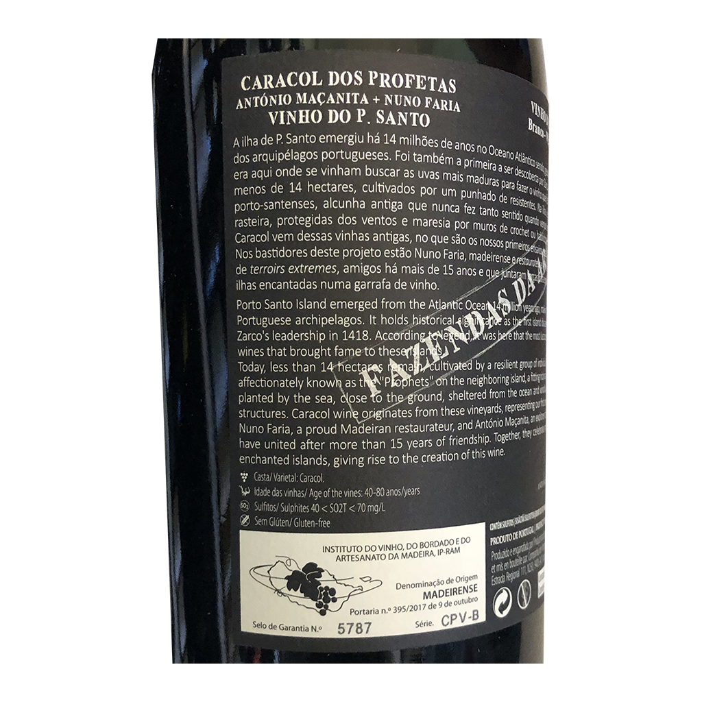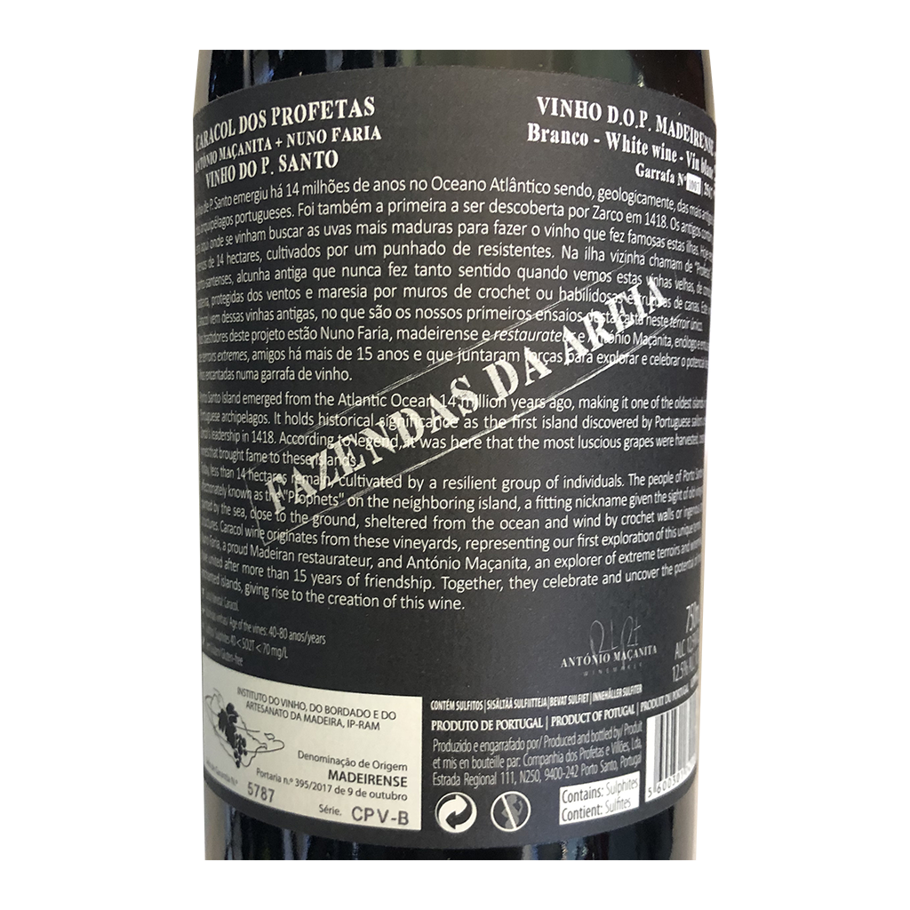 Diese 750ml Flasche Caracol dos Profetas - Weißwein, ist ein Weißwein aus Madeira in Portugal von Maçanita.
