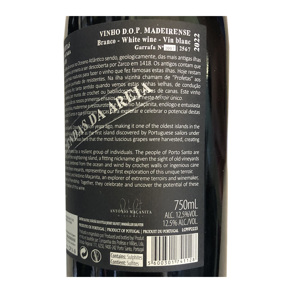 Diese 750ml Flasche Crosta Calcária dos Profetas - Weißwein, ist ein Weißwein aus Madeira in Portugal von Maçanita.