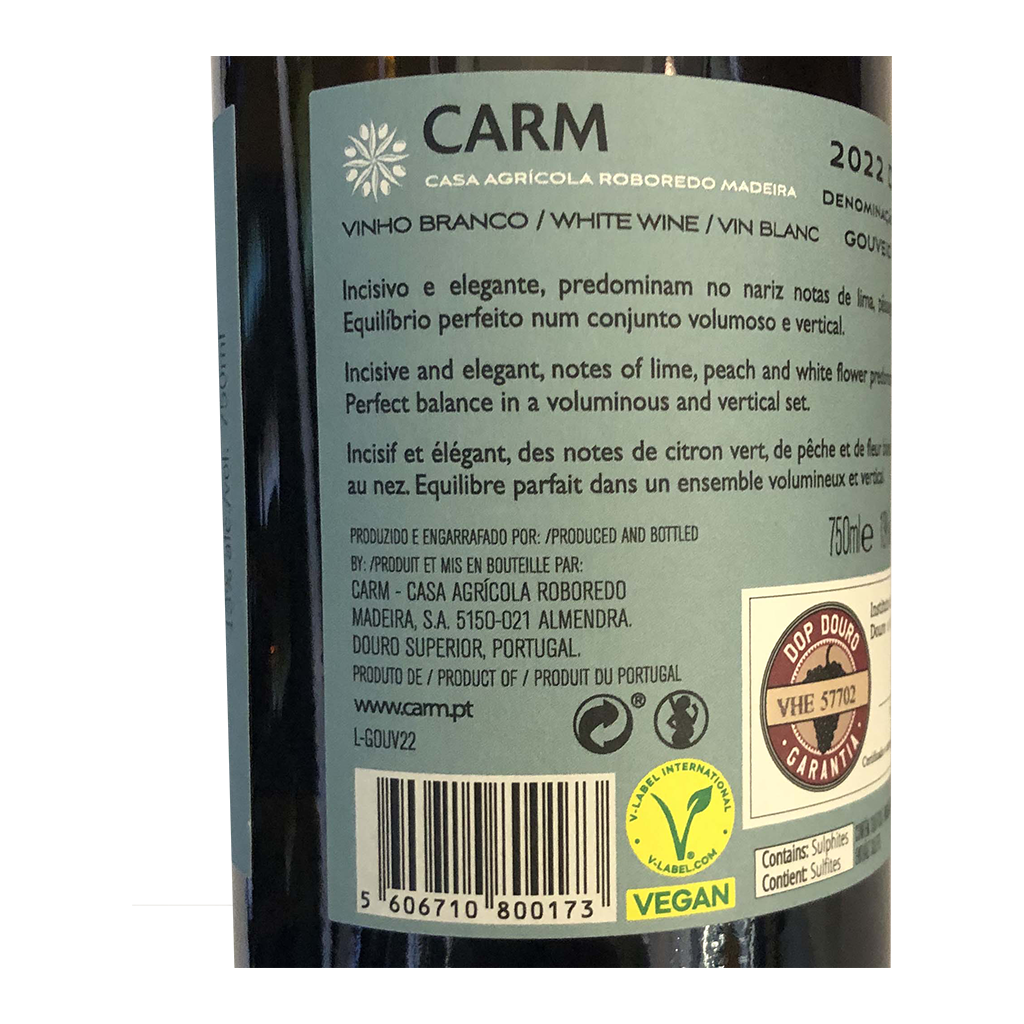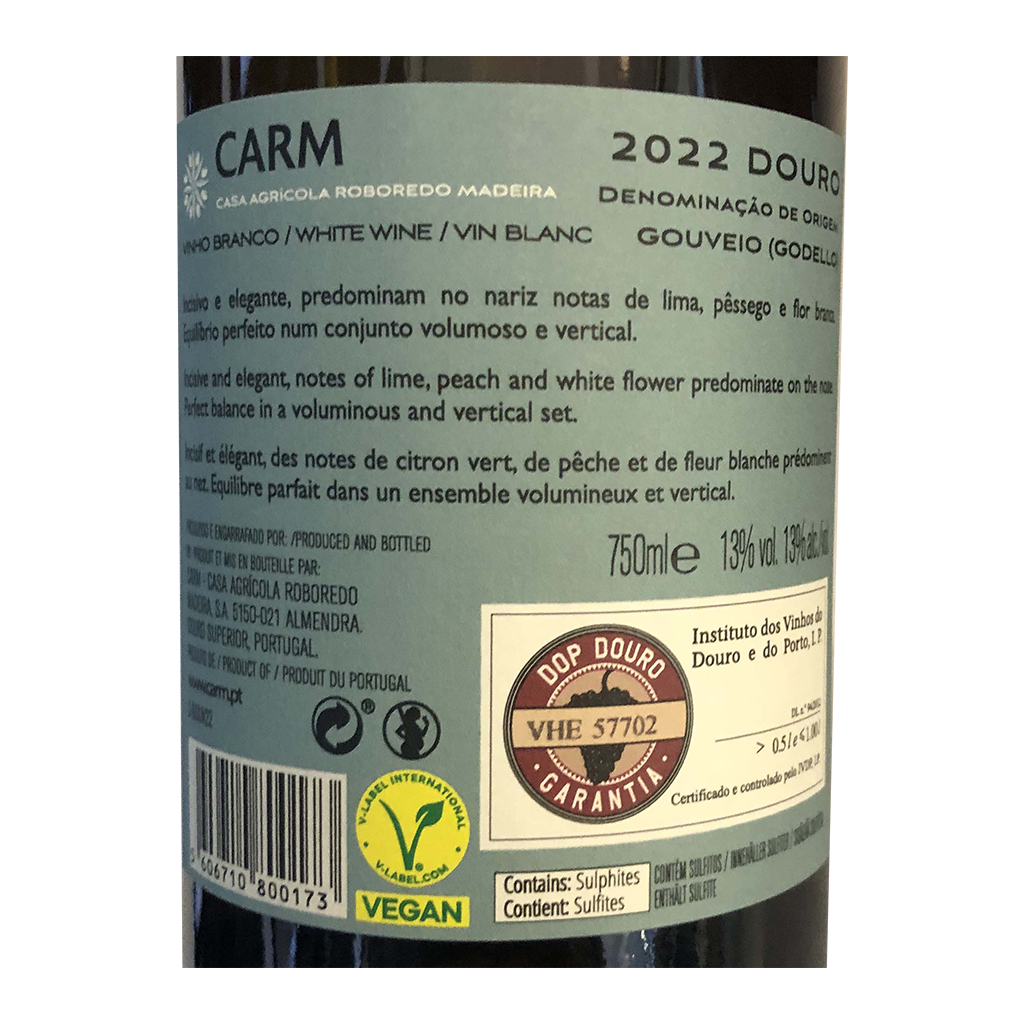 Diese 750ml Flasche CARM Natural Bio - Weißwein, ist ein Weißwein aus Porto e Douro in Portugal von CARM.