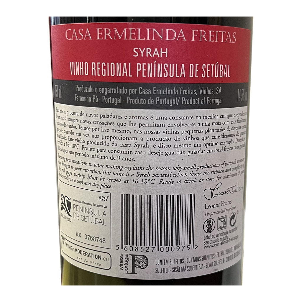 Diese 750ml Flasche Casa Ermelinda Freitas Touriga Nacional - Rotwein, ist ein Rotwein aus Península de Setúbal in Portugal von Casa Ermelinda Freitas.