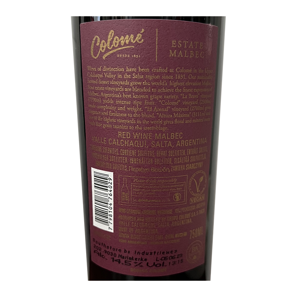 Produktspezifikation | Colomé Estate Malbec - Rotwein