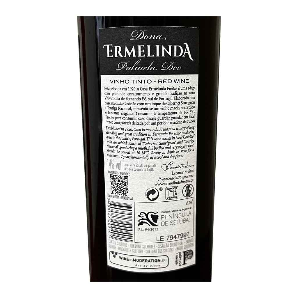 Diese 750ml Flasche Dona Ermelinda Reserve - Rotwein, ist ein Rotwein aus Península de Setúbal in Portugal von Casa Ermelinda Freitas.