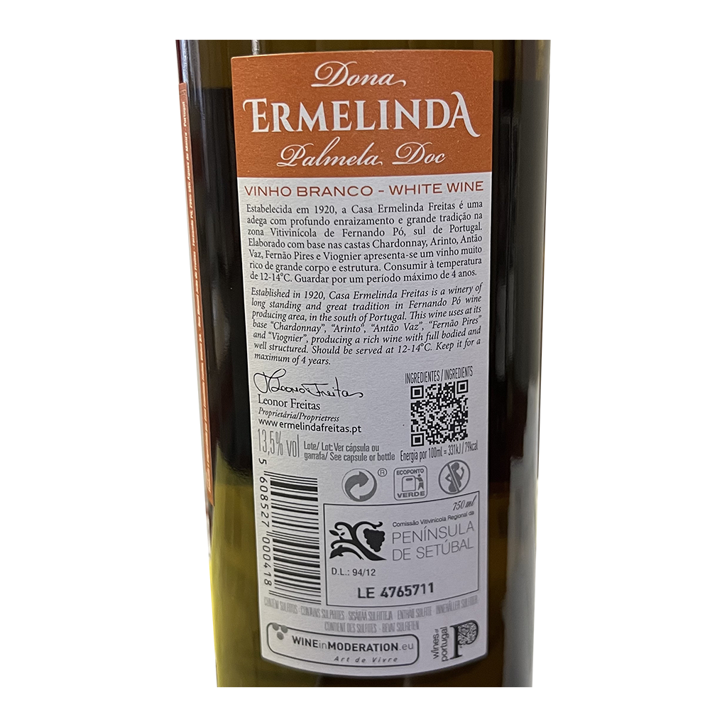 Diese 750ml Flasche Dona Ermelinda Reserve - Weißwein, ist ein Weißwein aus Península de Setúbal in Portugal von Casa Ermelinda Freitas.