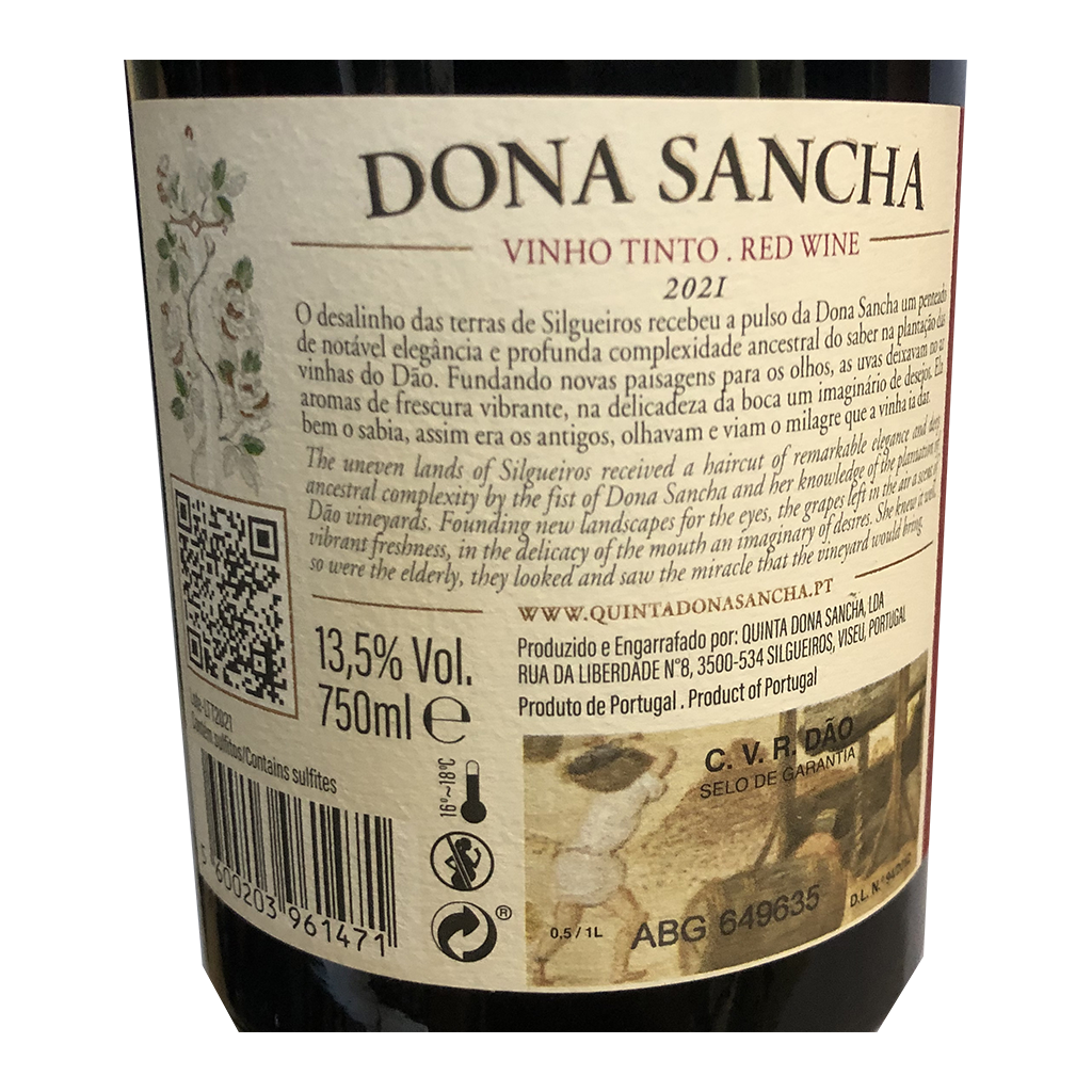 Diese 750ml Flasche Dona Sancha - Weißwein, ist ein Weißwein aus Dão e Lafões in Portugal von Quinta Dona Sancha.