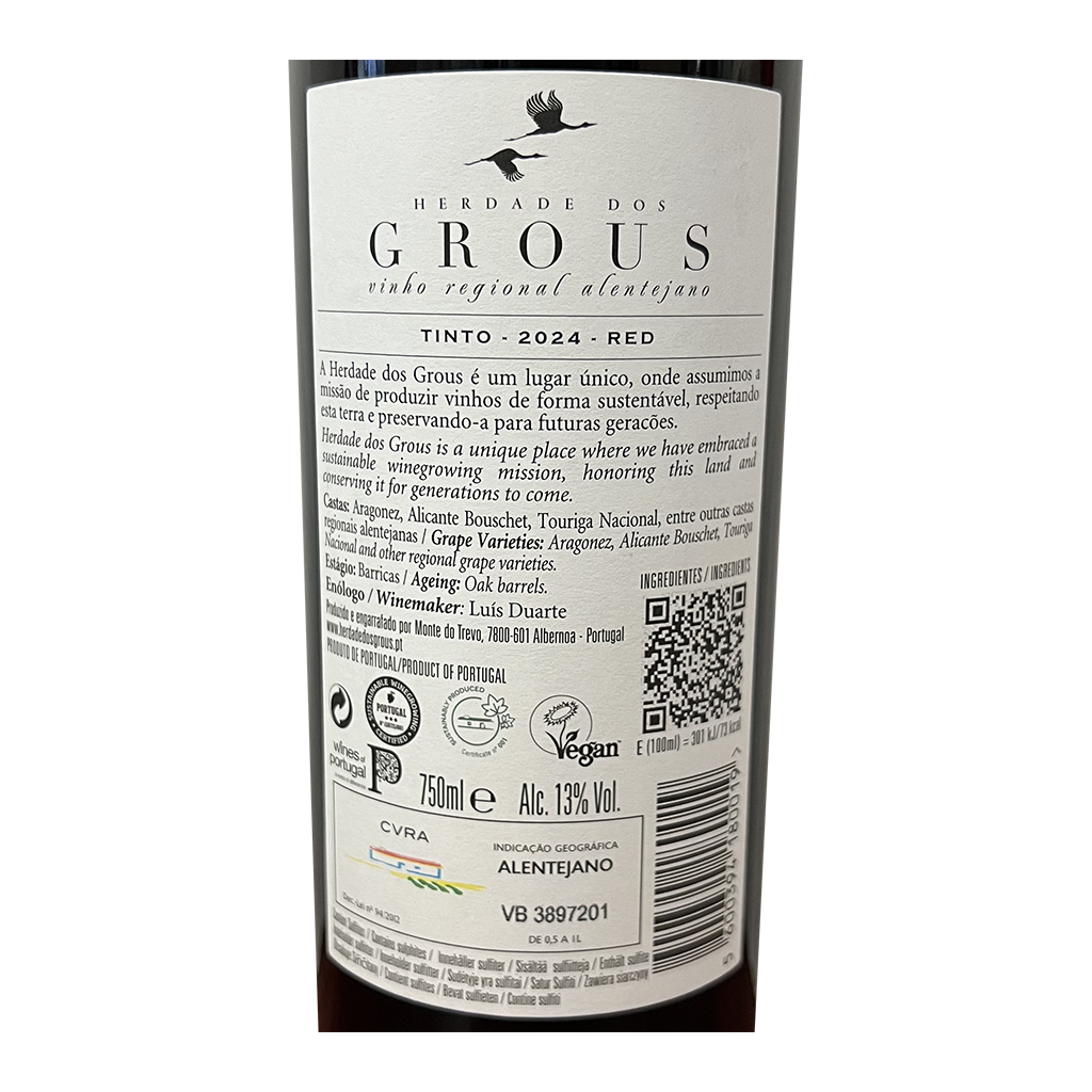 Diese 750ml Flasche Herdade dos Grous Reserve - Rotwein, ist ein Rotwein aus Alentejo in Portugal von Herdade dos Grous.