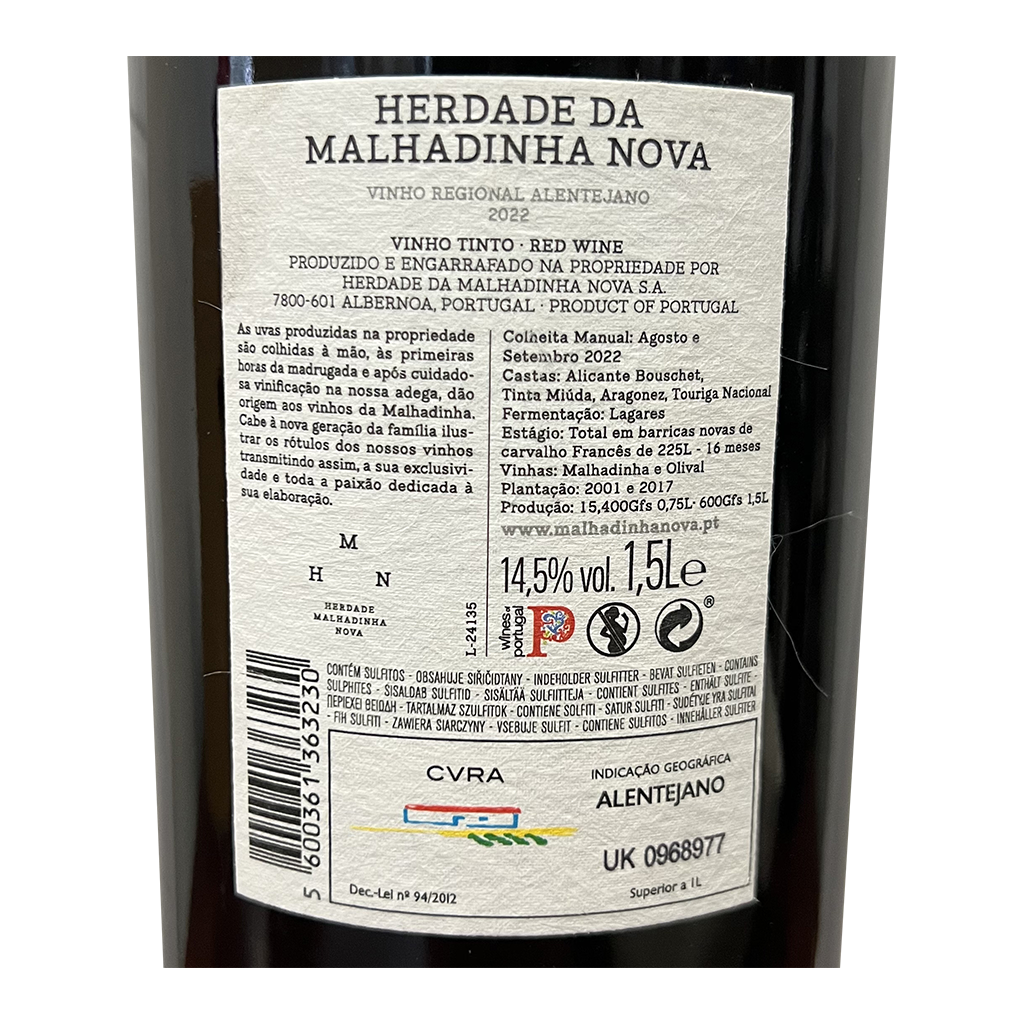 Diese 1500ml Flasche Marias Da Malhadinha Magnum - Rotwein, ist ein Rotwein aus Alentejo in Portugal von Herdade da Malhadinha Nova.
