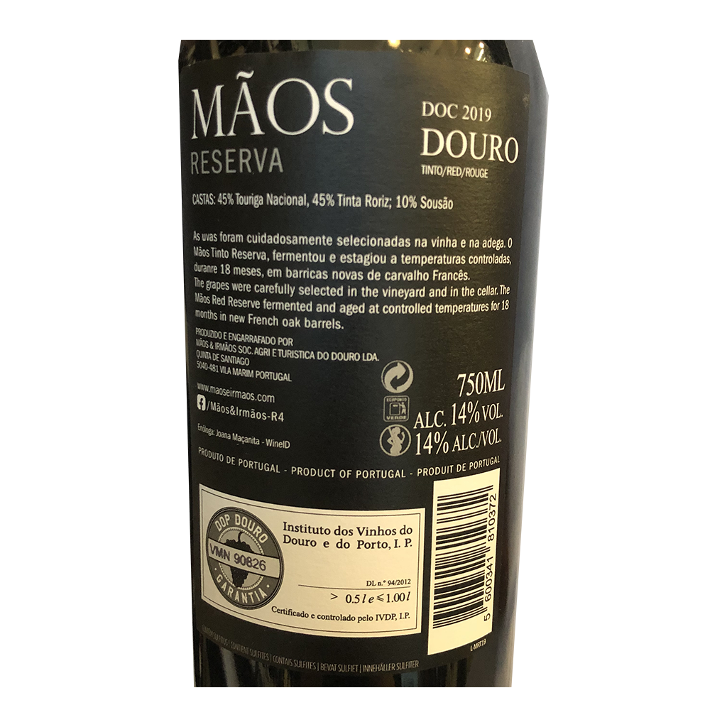 Diese 750ml Flasche Irmãos - Rotwein, ist ein Rotwein aus Porto e Douro in Portugal von Mãos e Irmãos.