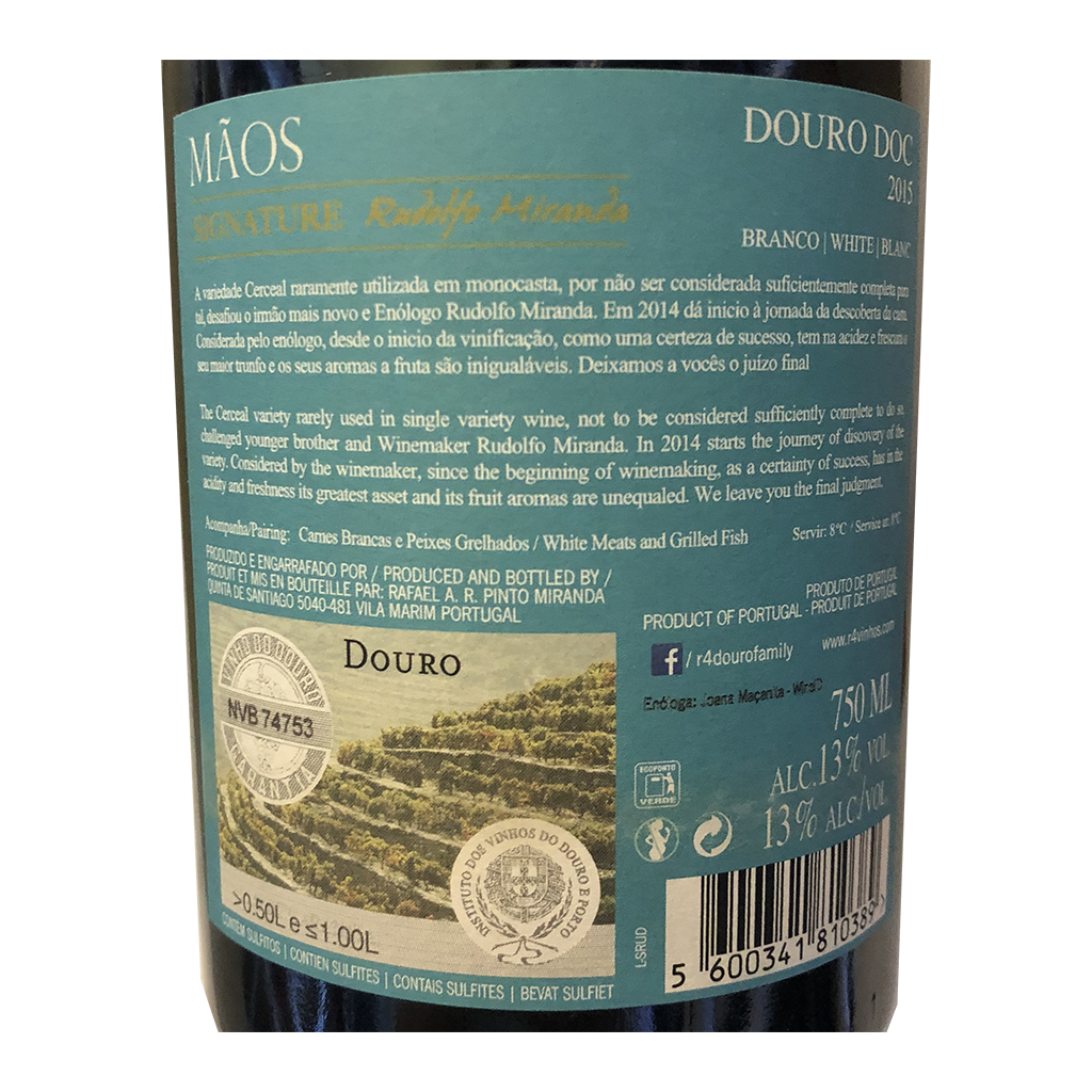 Diese 750ml Flasche Mãos Rabigato - Weißwein, ist ein Weißwein aus Porto e Douro in Portugal von Mãos e Irmãos.