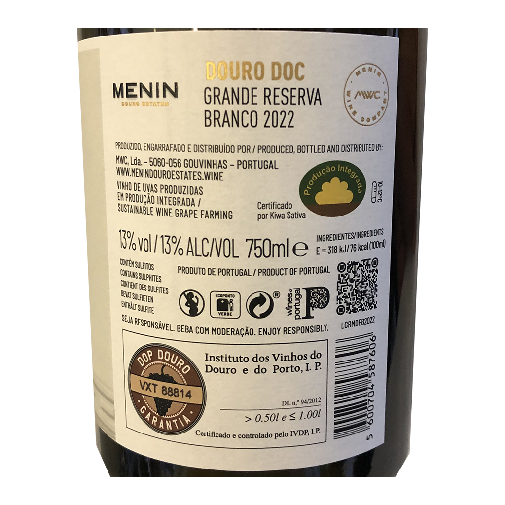 Diese 750ml Flasche Menin Reserve - Weißwein, ist ein Weißwein aus Porto e Douro in Portugal von Menin Douro Estates.