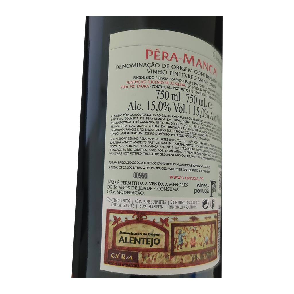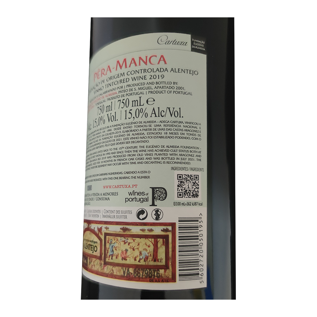 Diese 750ml Flasche Cartuxa - Rotwein, ist ein Rotwein aus Alentejo in Portugal von Cartuxa.