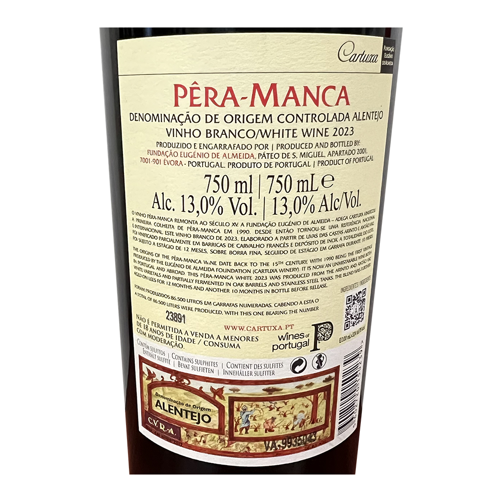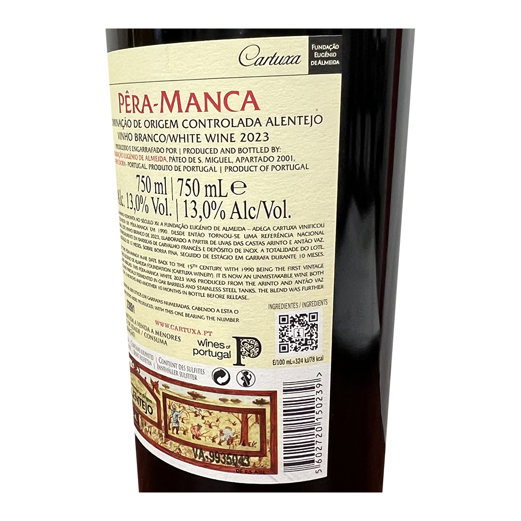 Diese 750ml Flasche Cartuxa - Weißwein, ist ein Weißwein aus Alentejo in Portugal von Cartuxa.