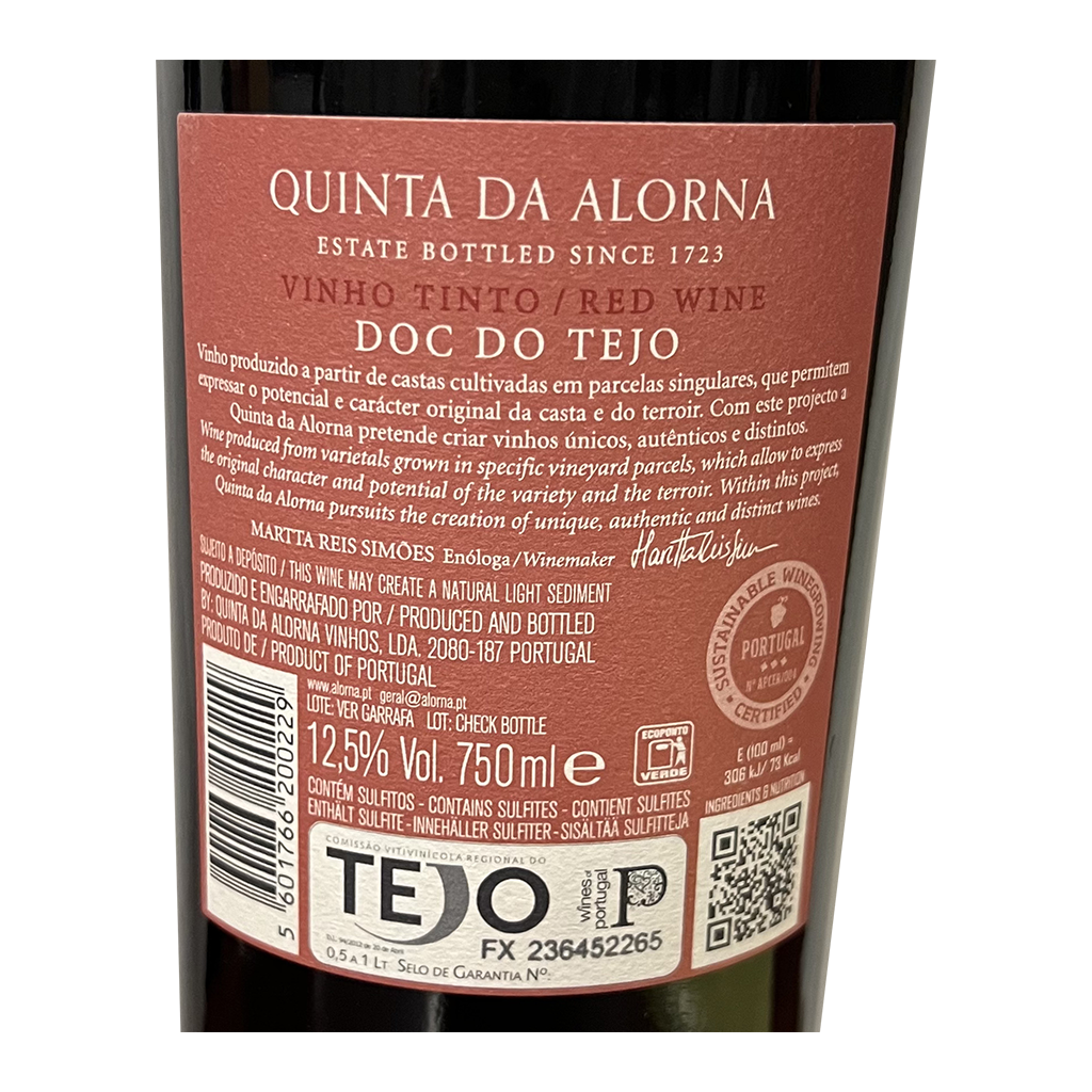 Diese 750ml Flasche Quinta da Alorna Reserve Touriga e Cabernet - Rotwein, ist ein Rotwein aus Tejo in Portugal von Quinta da Alorna.