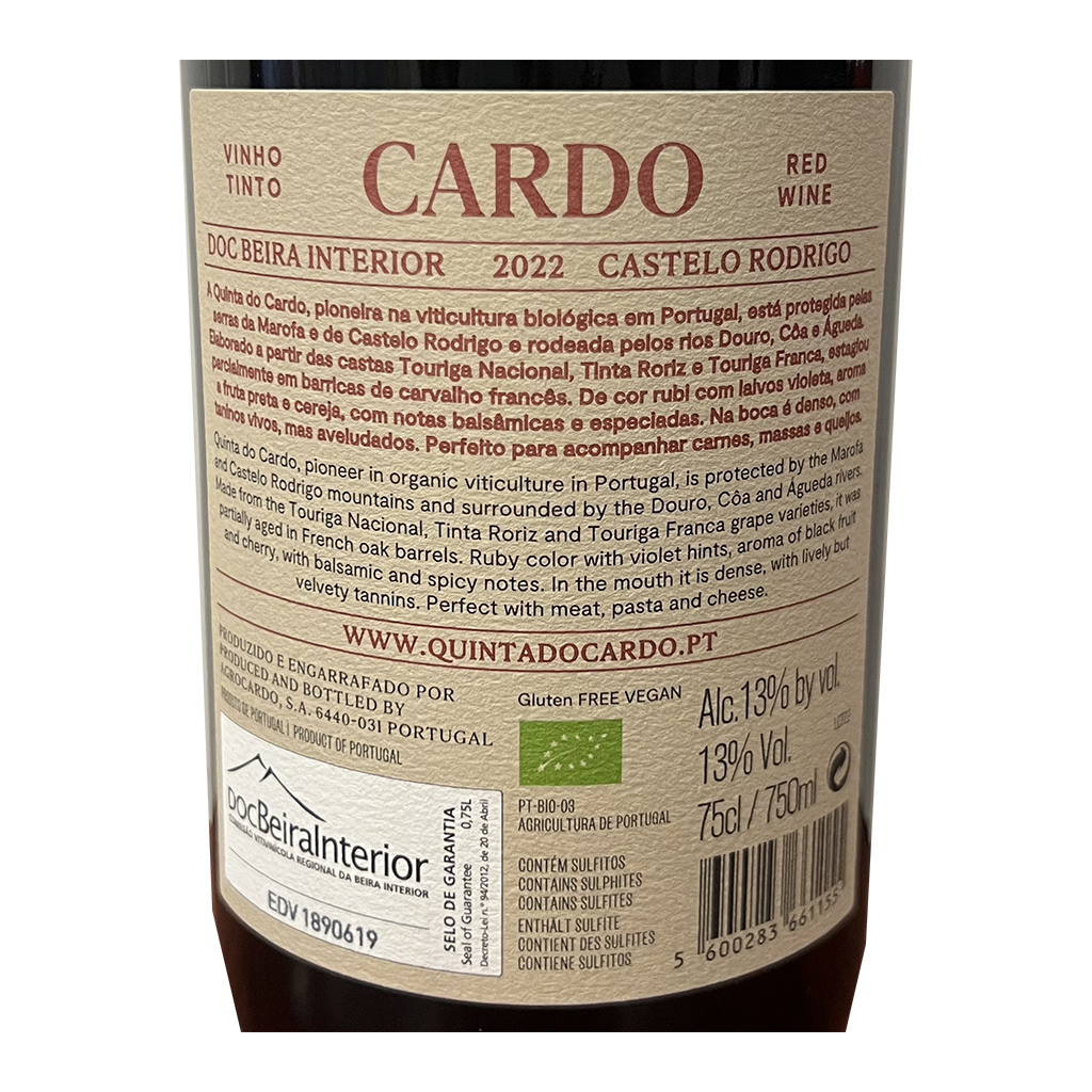 Diese 750ml Flasche Quinta do Cardo Superior - Rotwein, ist ein Rotwein aus Beira Interior in Portugal von Quinta do Cardo.
