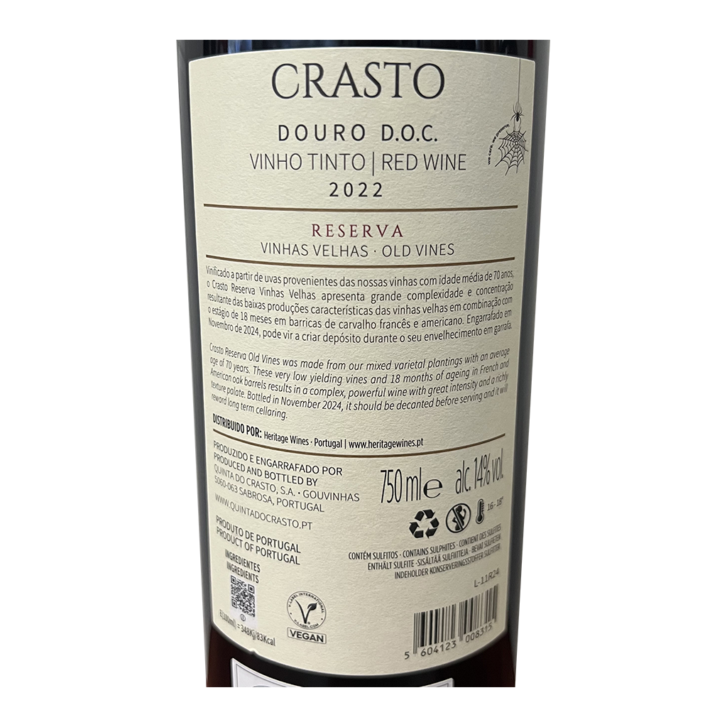 Diese 750ml Flasche Quinta do Crasto Tinta Roriz - Rotwein, ist ein Rotwein aus Porto e Douro in Portugal von Quinta do Crasto.