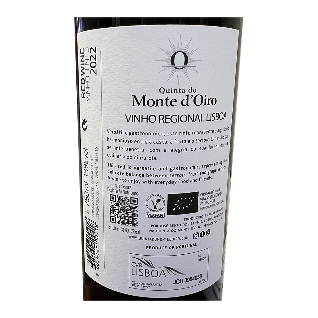 Diese 750ml Flasche Quinta do Monte d'Oiro Tinta Roriz - Rotwein, ist ein Rotwein aus Lisboa in Portugal von Quinta do Monte d'Oiro.