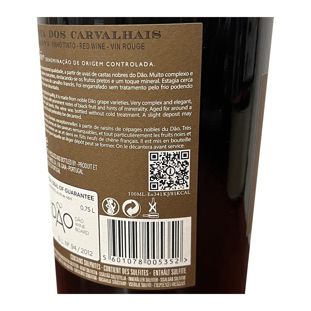 Diese 750ml Flasche Quinta dos Carvalhais - Rotwein, ist ein Rotwein aus Dão e Lafões in Portugal von Quinta dos Carvalhais.