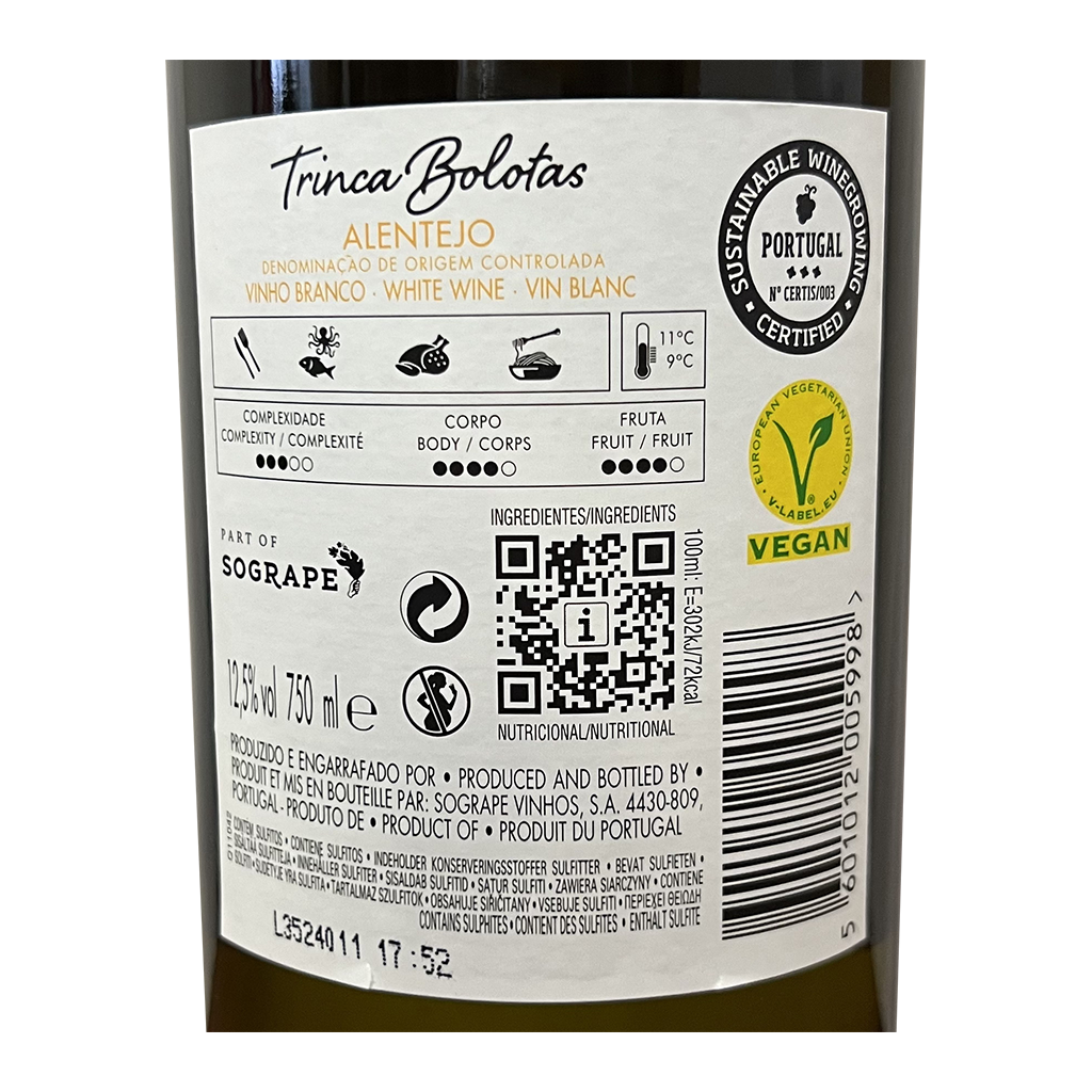 Diese 750ml Flasche Sossego - Weißwein, ist ein Weißwein aus Alentejo in Portugal von Herdade do Peso.