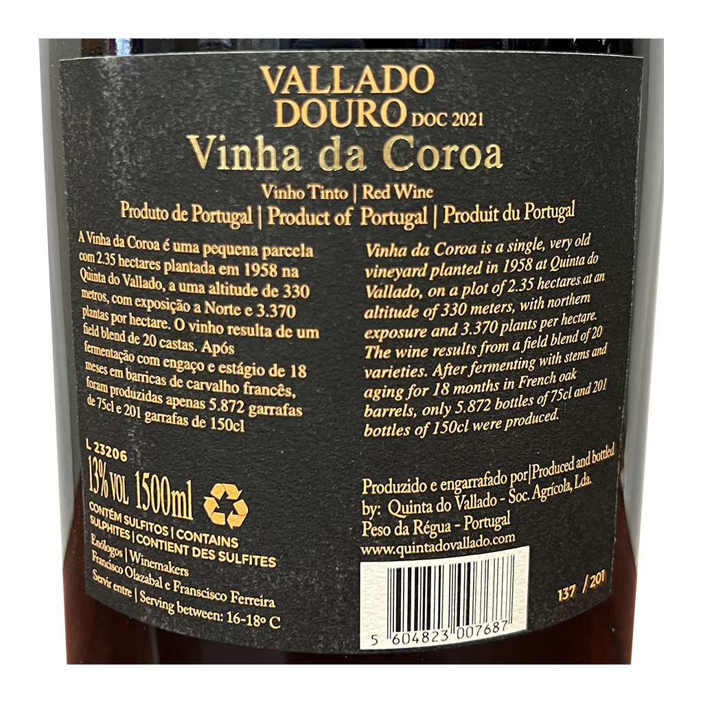 Diese 1500ml Flasche Vallado Magnum - Rotwein, ist ein Rotwein aus Porto e Douro in Portugal von Quinta do Vallado.