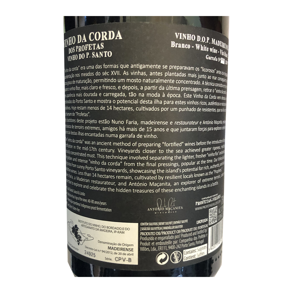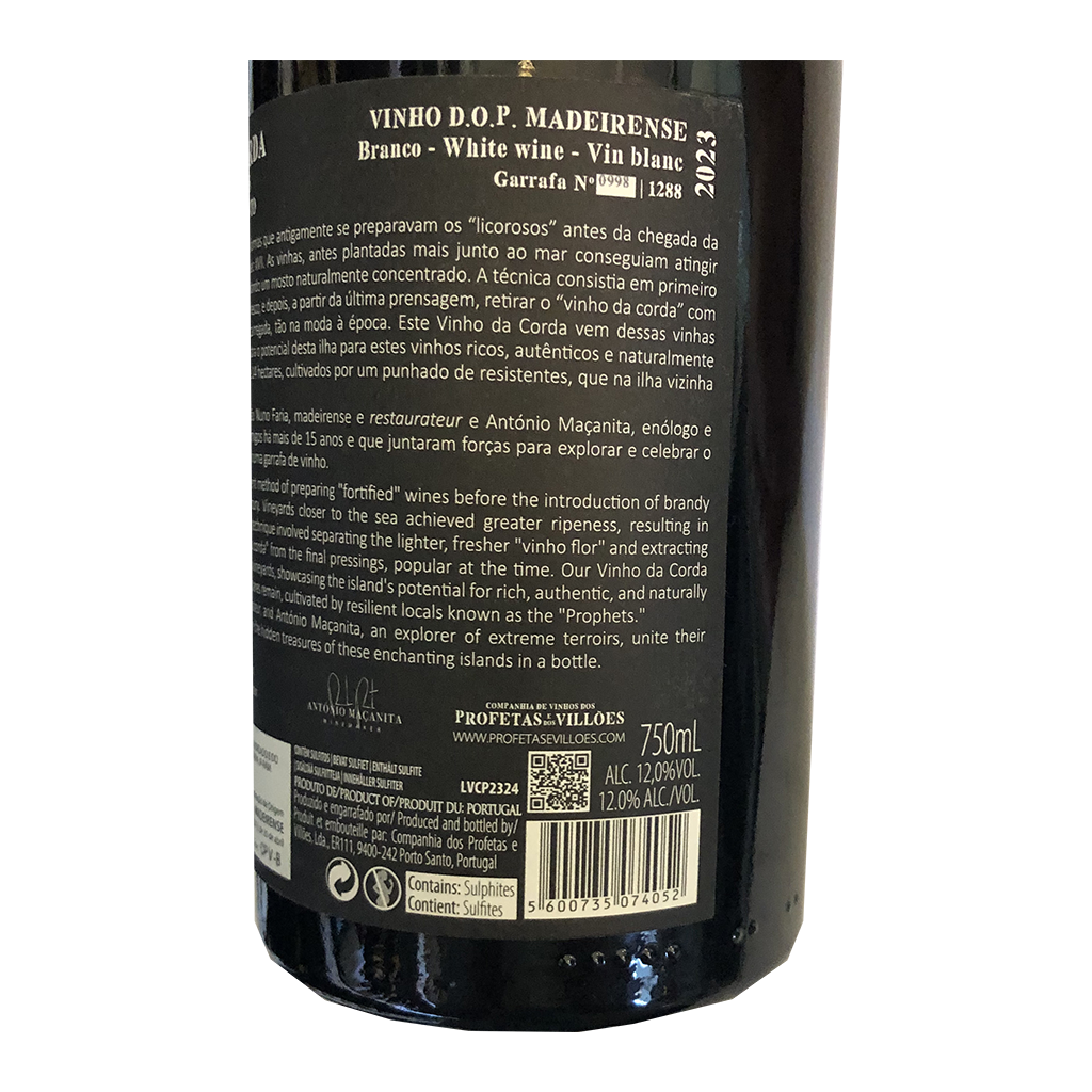 Diese 750ml Flasche Listrão dos Profetas - Weißwein, ist ein Weißwein aus Madeira in Portugal von Maçanita.