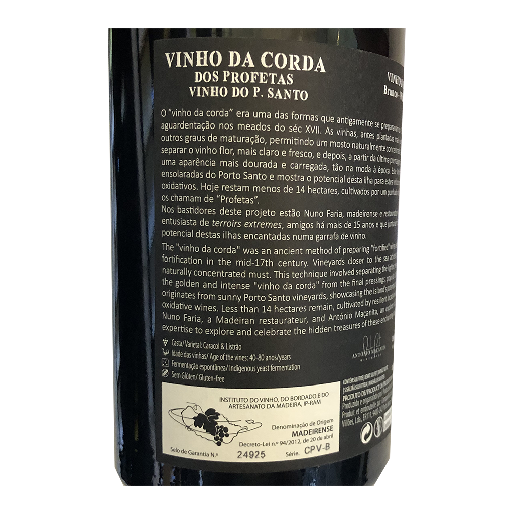 Diese 750ml Flasche Crosta Calcária dos Profetas - Weißwein, ist ein Weißwein aus Madeira in Portugal von Maçanita.